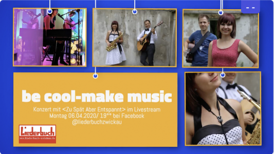 ZU SPÄT ABER ENTSPANNT im Livestream KonzertIrgendwie ist Alles zu Irgendwas gut und so brachte uns die CORONA-Isolation auf die Idee Konzerte als Livestream zu übertragen.